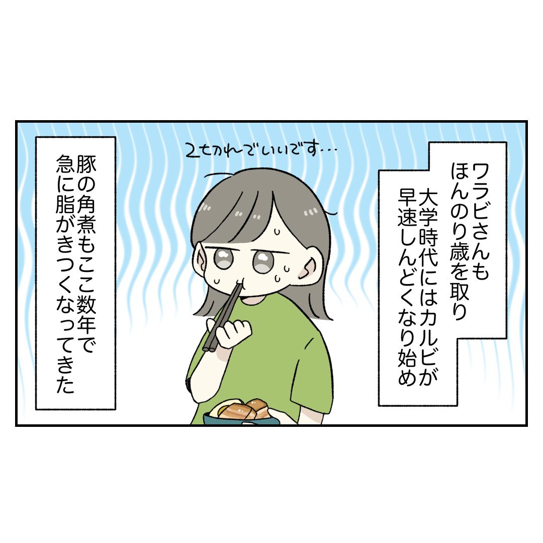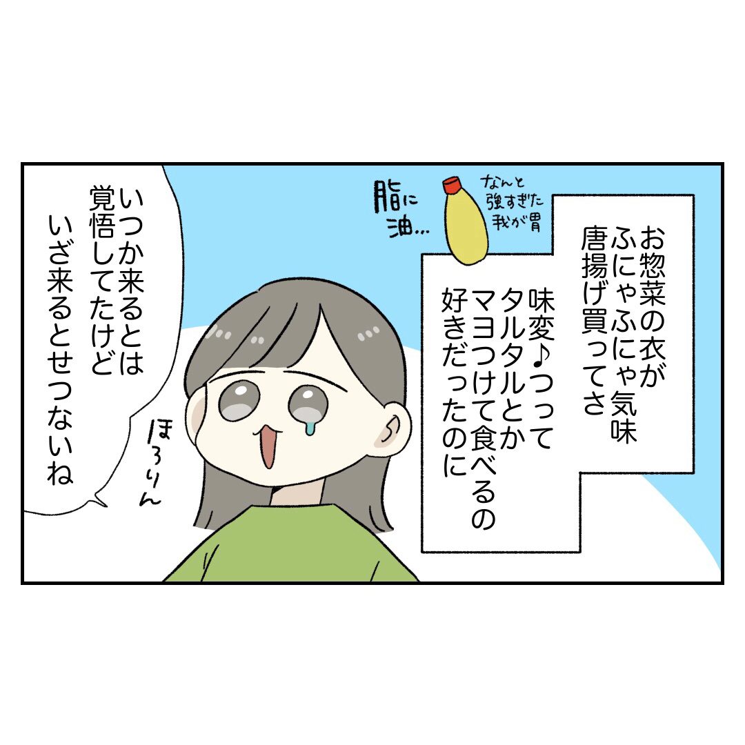 先駆者たちに「今のうちに脂っこいもの食っとけ!!!」って言われても「いいや〜!?私は大丈夫だね🎶」と思ってたらさ