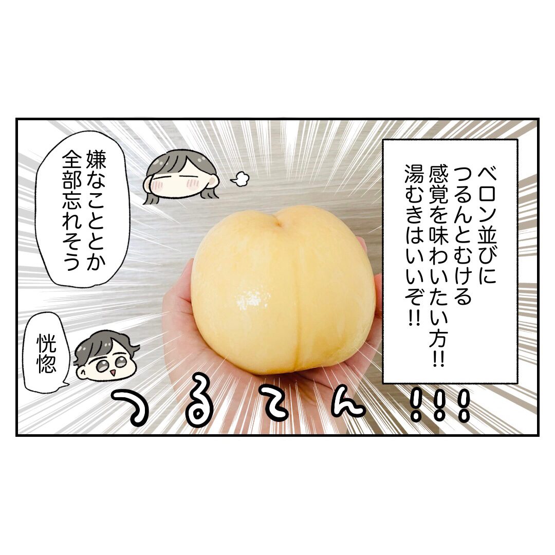 皮をちまちま剥く必要がないのと、つんつるてんになった桃を見たらもう湯むき一択になってしまった